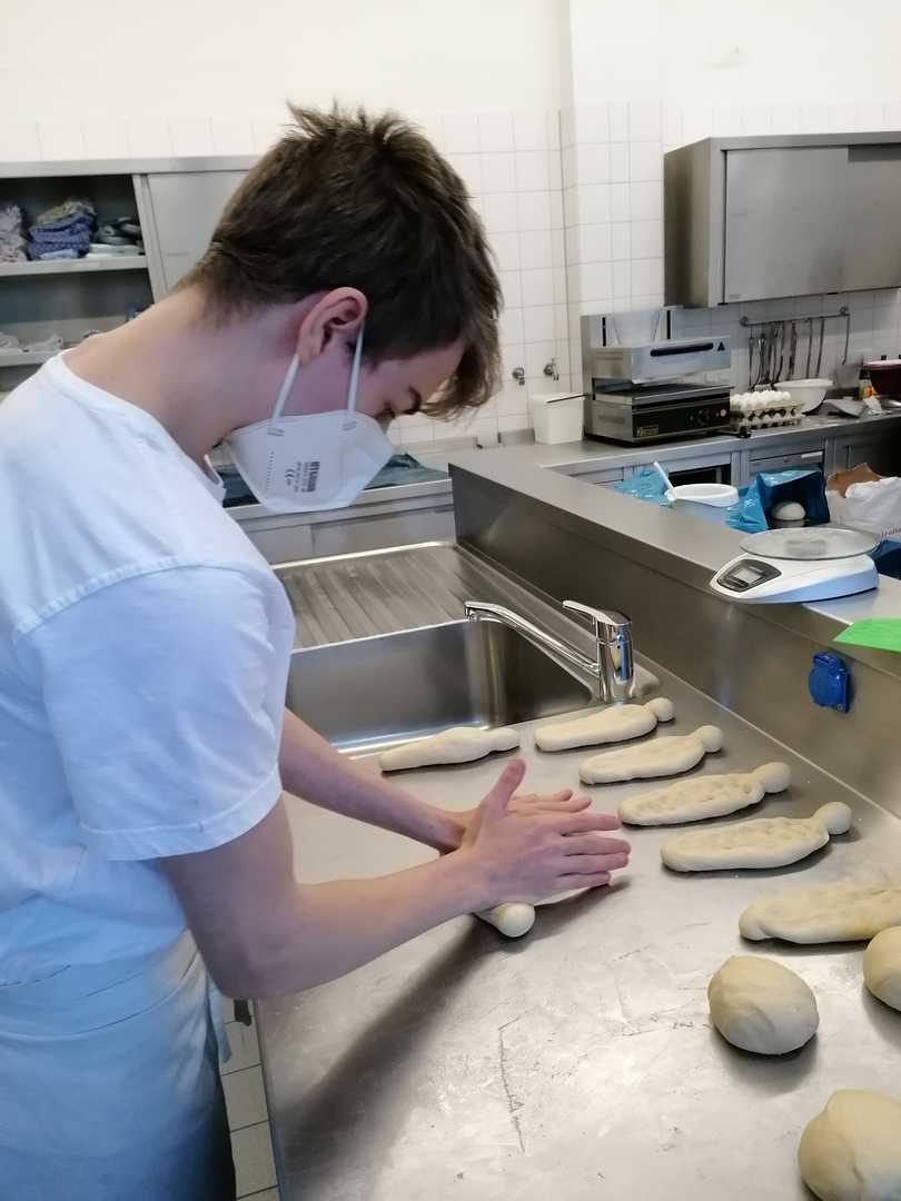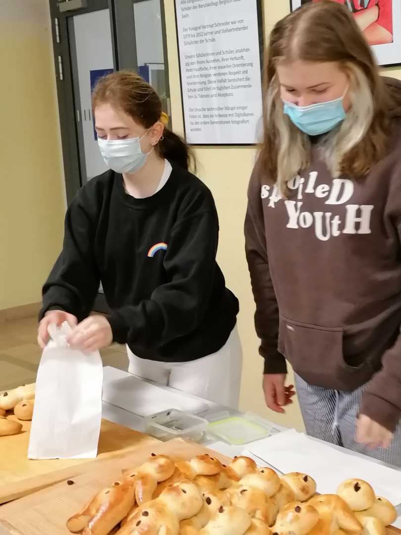 Die Unterstufenklassen der Bildungsgänge „Bäcker/in“ und Fachverkäufer/in“ haben mit ihrem Fachlehrer, Ralf Heringer-Thimme, 260 Weckmänner aus feinem Hefeteig hergestellt und den Pausenverkauf dafür organisiert. Die ofenfrischen Weckmänner gingen in jeder Pause weg wie „warme Semmeln“!