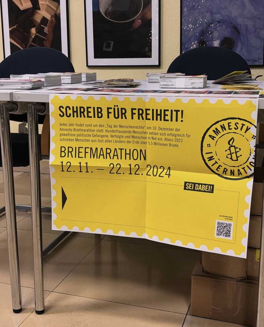 Die Schülerinnen und Schüler des Berufskollegs Bergisch Gladbach (seit April 2024 im Netzwerk „Schule ohne Rassismus -Schule mit Courage“) haben am 10.12.2024 mit großem Engagement am Briefmarathon von Amnesty International teilgenommen – und ihr Einsatz hat messbare Erfolge erzielt. In Angola wurde nun die inhaftierte Influencerin Neth Nahara aus der Haft entlassen, und in der Türkei wurde die angesehene Forensikerin Sebnem Fincanci von unbegründeten Anklagen freigesprochen. Diese positiven Entwicklungen verdeutlichen die Wirksamkeit globaler Solidarität und das Potenzial zivilgesellschaftlichen Engagements.