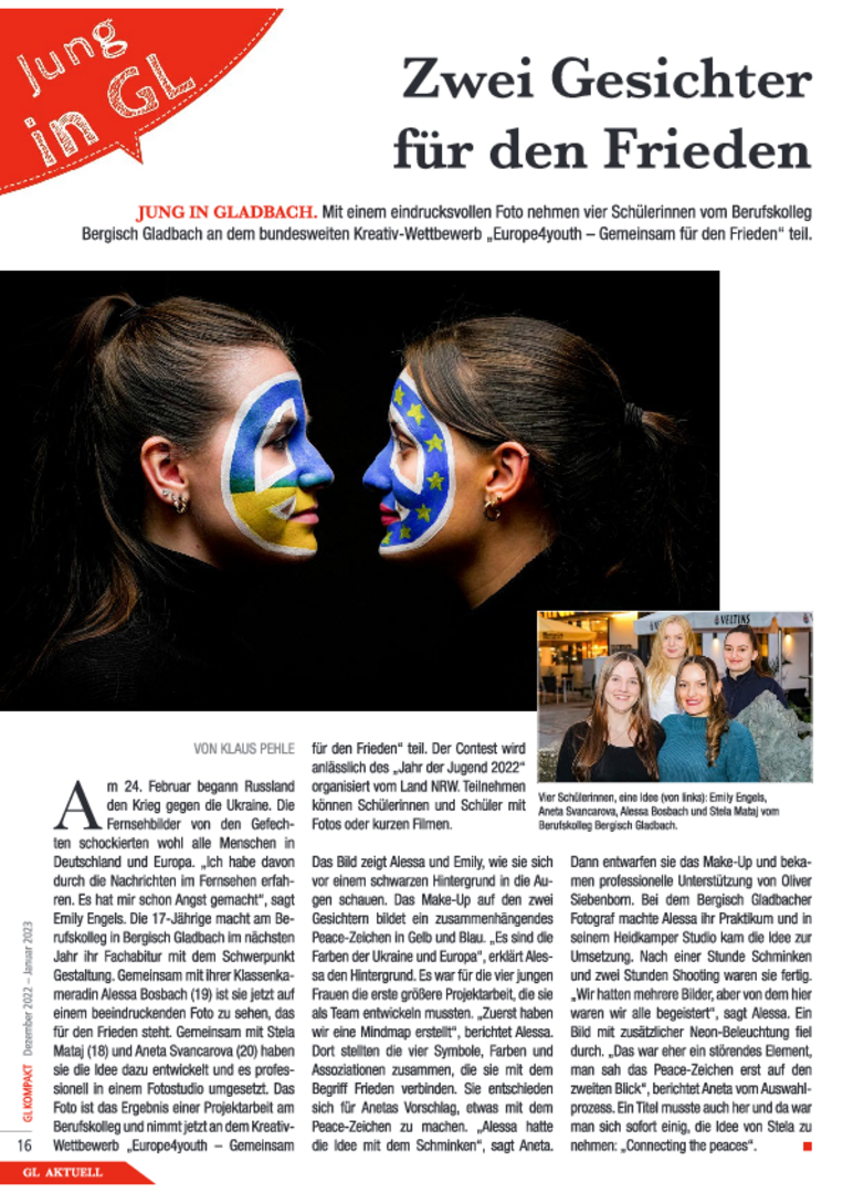 JUNG IN GLADBACH. Mit einem eindrucksvollen Foto nehmen vier unserer Schülerinnen