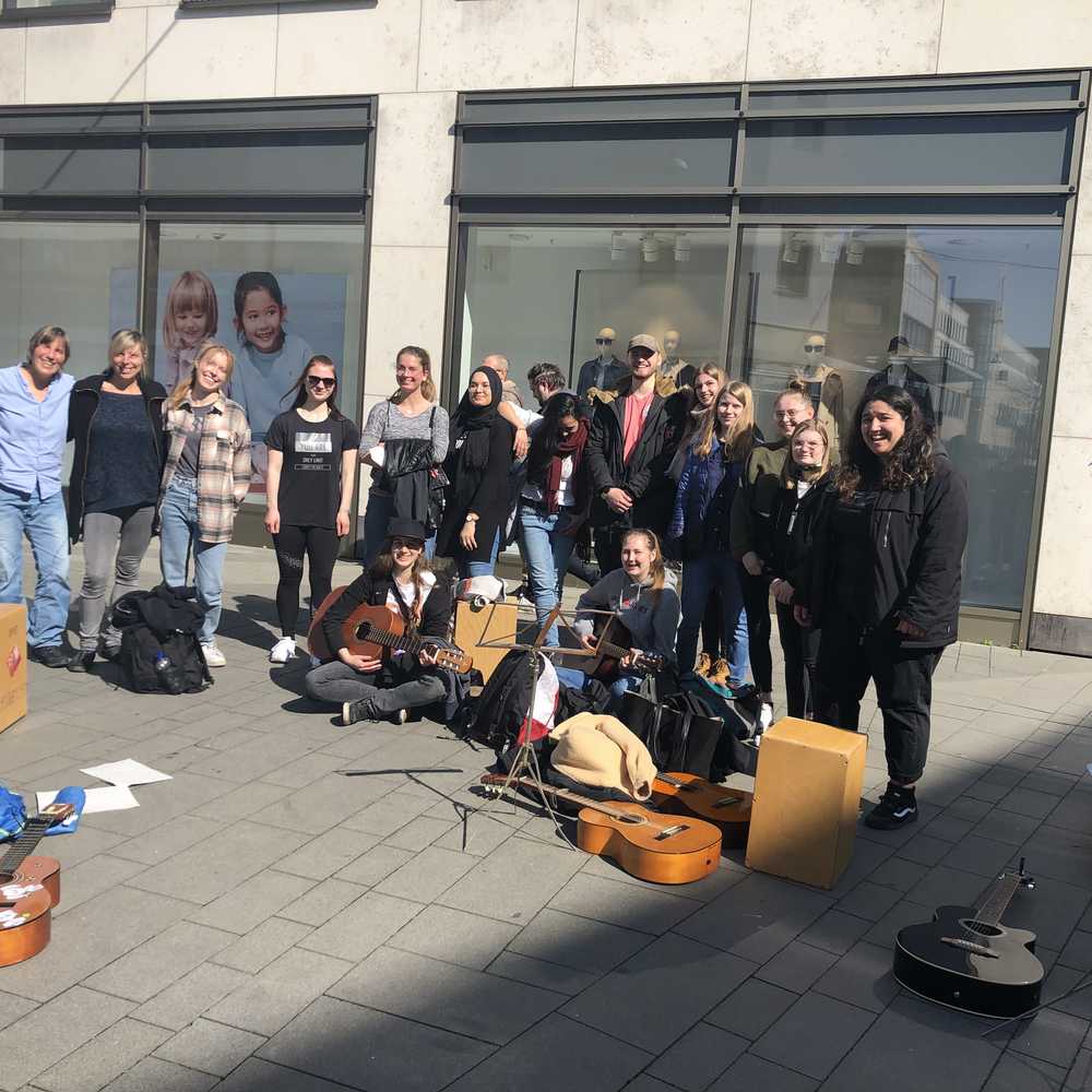 Ein strahlend sonniger Tag im März 2022 war perfekt, um Straßenmusik in der Innenstadt von Bergisch Gladbach zu machen.